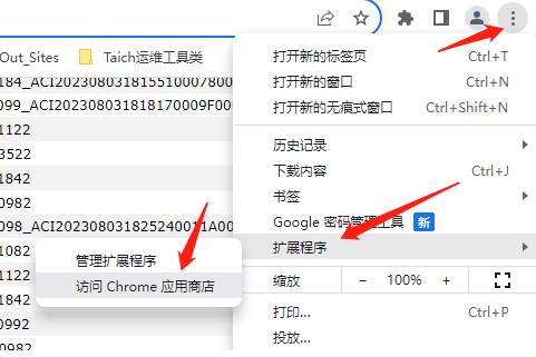 在谷歌右上角菜单(三个点)--扩展程序--访问Chrome应用商店